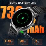 - 【ظرفیت باتری بزرگ ۷۳۰ میلیآمپر ساعت】ساعتهای هوشمند تاکتیکال برای آقایان دارای باتری ۷۳۰ میلیآمپر ساعتی هستند که دو برابر ساعتهای هوشمند معمولی است. یک الگوریتم هوش مصنوعی فوقالعاده کممصرف در این ساعتها به کار گرفته شده است تا مصرف برق را به حداقل برساند و میتواند به استفاده از حالت ورزشی ادامه دهد. شارژ این ساعت هوشمند ۳ ساعت طول میکشد و عمر باتری با یک بار شارژ کامل معمولاً ۷ تا ۱۰ روز طول میکشد، بسته به میزان استفاده شما از ساعت.