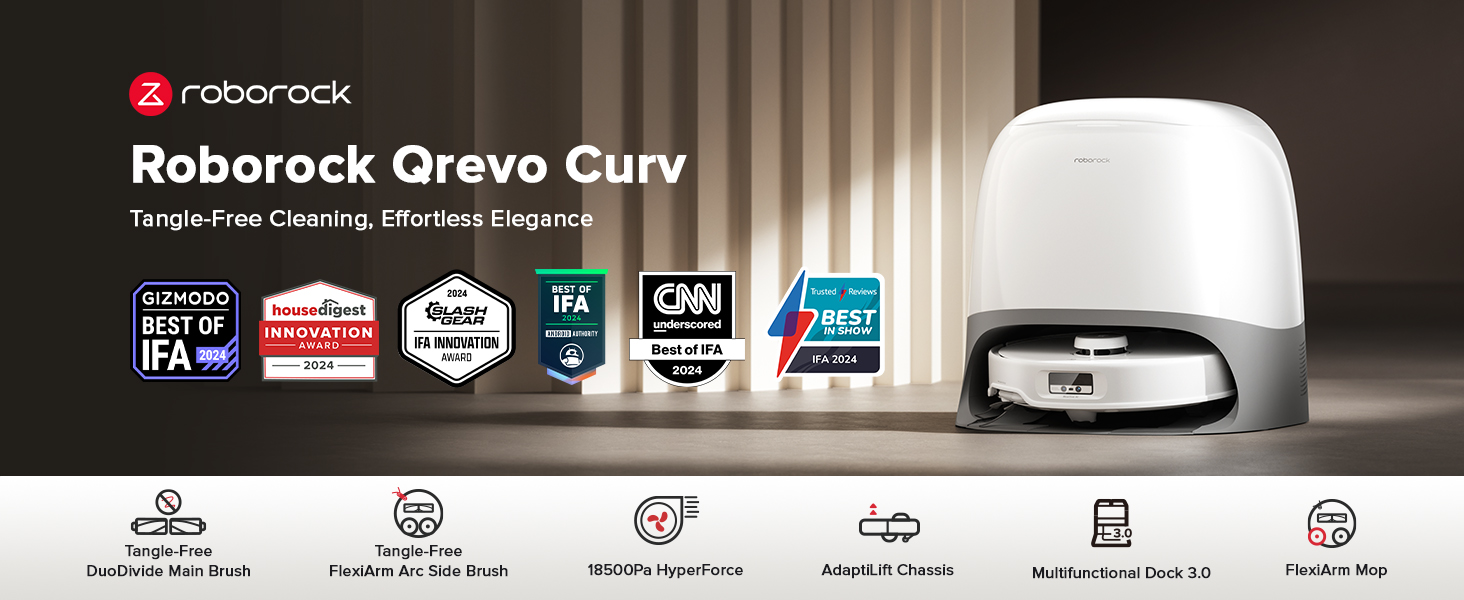 جاروبرقی و تی رباتیک Roborock مدل Qrevo Curv- برسهای اصلی و جانبی بدون گره خوردن: با موهای گره خورده خداحافظی کنید! برس اصلی DuoDivide و برس جانبی FlexiArm Arc، تمیز کردن را حتی در خانههایی با موهای بلند یا حیوانات خانگی بدون دردسر میکنند. سیستم بدون گره خوردن Roborock Qrevo Curv تضمین میکند که نیازی به نگهداری مداوم برس نخواهید داشت و به شما امکان میدهد بدون وقفه روی لذت بردن از خانهای تمیز تمرکز کنید.