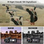 - دید در شب مادون قرمز و بزرگنمایی دیجیتال ۱۸ برابر: دوربین ۸K از بزرگنمایی دیجیتال ۱۸ برابر پشتیبانی میکند، حتی اگر بخواهید از منظرهای در دوردست عکس بگیرید، میتوانید به راحتی عکسهای مورد نظر خود را بگیرید. دید در شب مادون قرمز به شما امکان میدهد حتی در محیطهای تاریک عکسهای واضحی بگیرید. برای فعال کردن حالت دید در شب، کافیست دکمه پاور را فشار دهید.