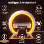 - ⚡ – 【طراحی همهکاره】 این دستگاه چیزی بیش از یک چراغ است، یک راهحل همهکاره برای کنار تخت یا محل کار شما. این دستگاه یک شارژر بیسیم سریع ۱۵ واتی، بلندگوی بلوتوث و مجموعهای از عملکردها از جمله پخش موسیقی، چراغ خواب، جلوههای نوری خیرهکننده، صدای بلوتوث، ساعت و ساعت زنگدار را در خود جای داده است.